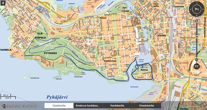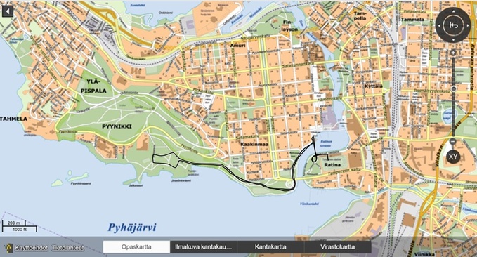 The route starts from the Ratina Stadium over the Suvanto-bridge and along Nalkalankatu towards Etelä-Puisto park. From Eteläpuisto park route continues along the park road towards Pyynikki Summer Theatre and Rosendahl.